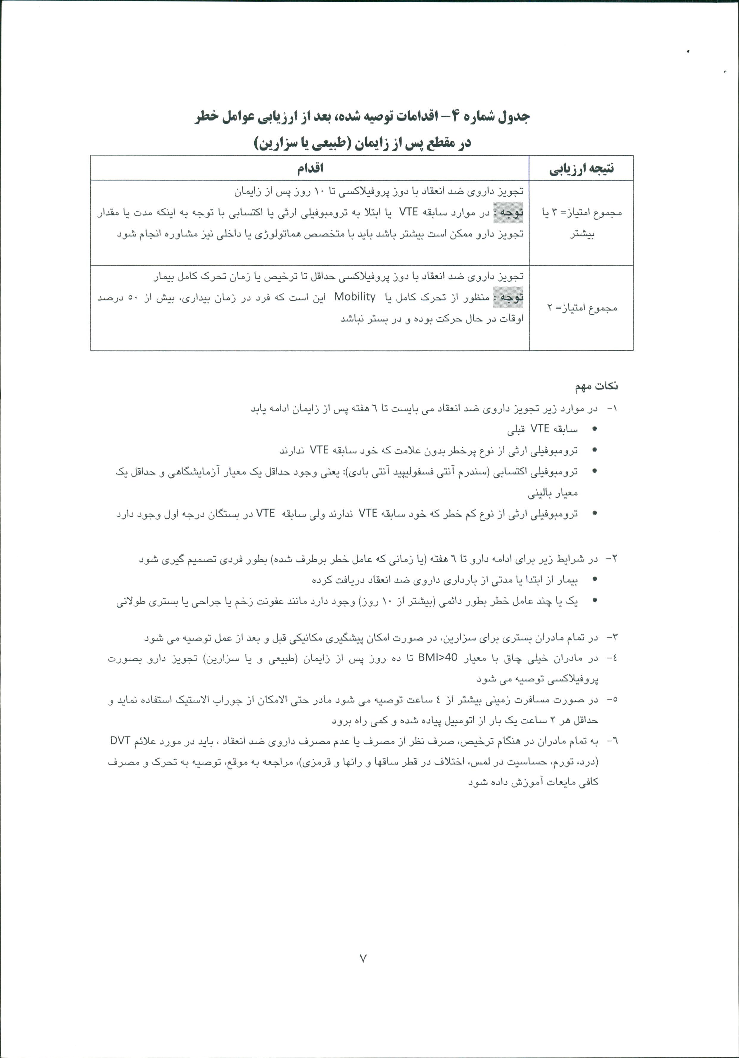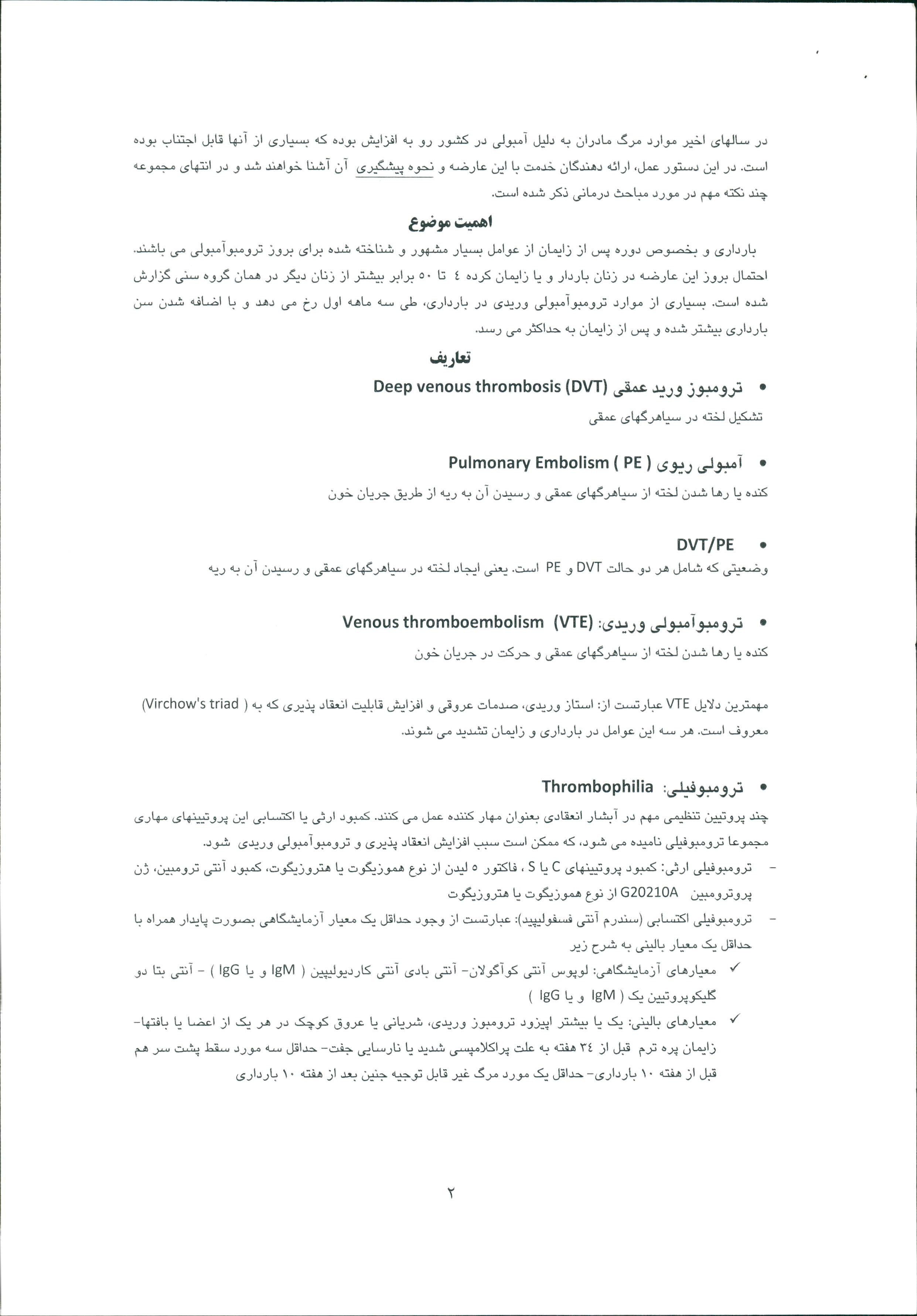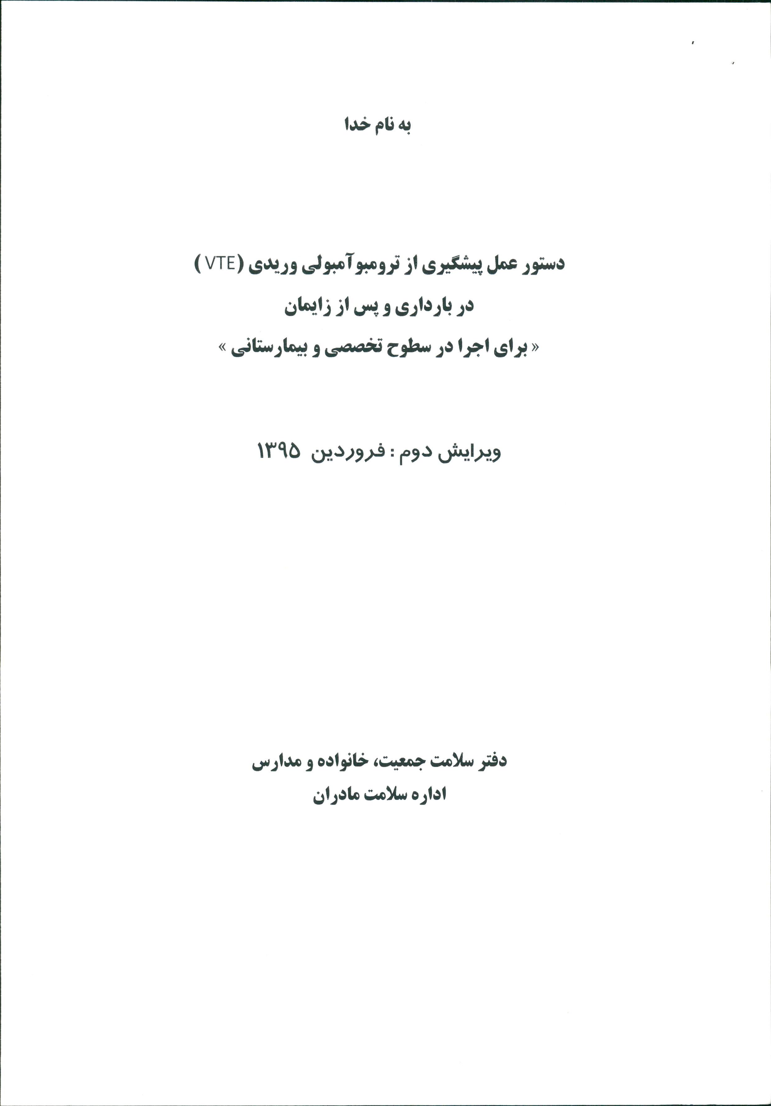 1- نامه معاون درمان در خصوص لزوم اجراي دستورالعمل كشوري مراقبت ازترومبو آمبولي در بارداري، زايمان و پس از زايمان