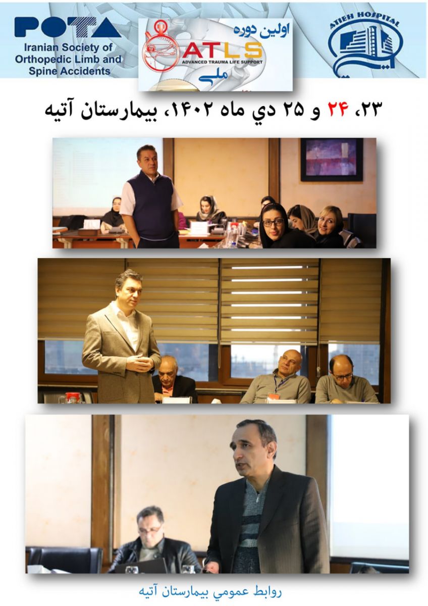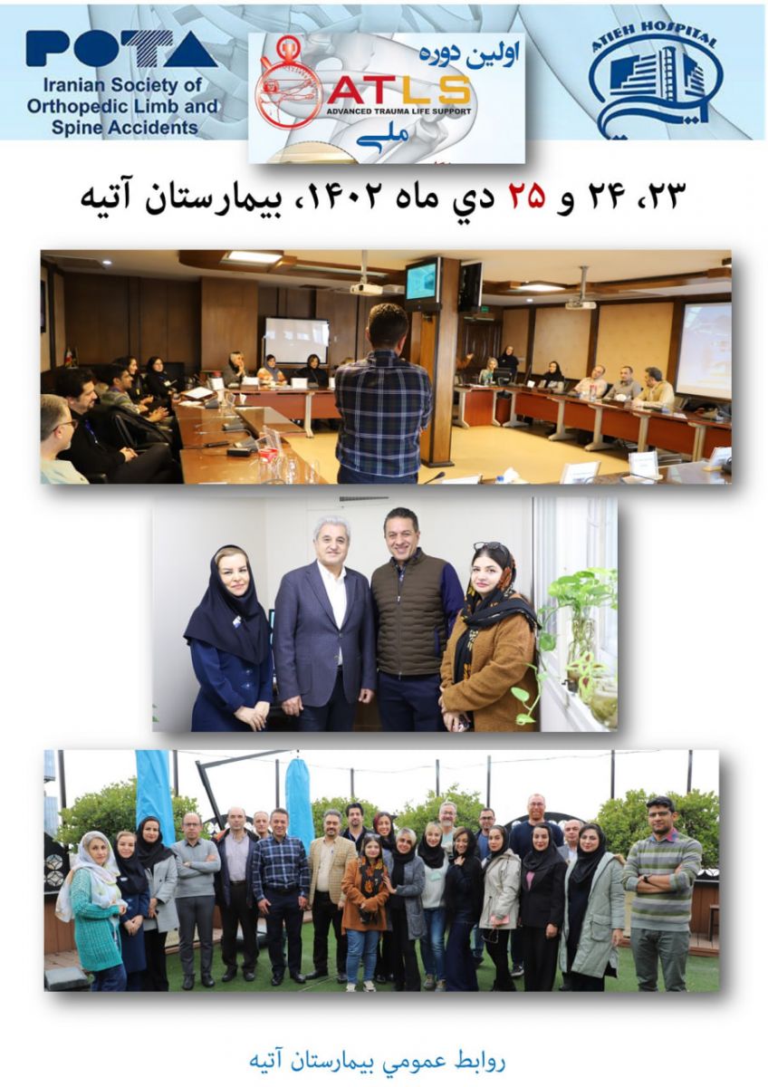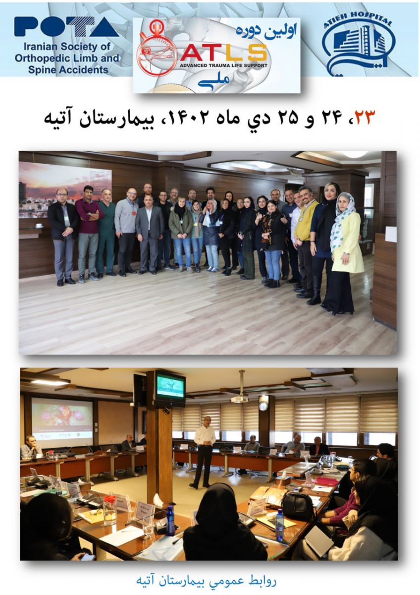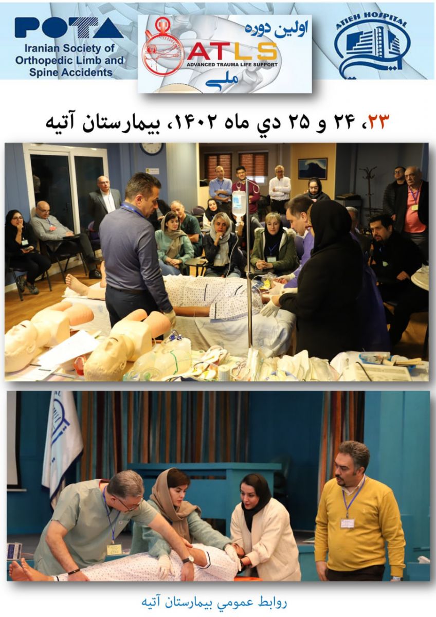 بيمارستان آتيه و مركز مهارتي انجمن ارتوپدي حوادث اندام و ستون فقرات ايران اولين دوره ATLSملي در دي ماه 1402 را برگزار كرد.