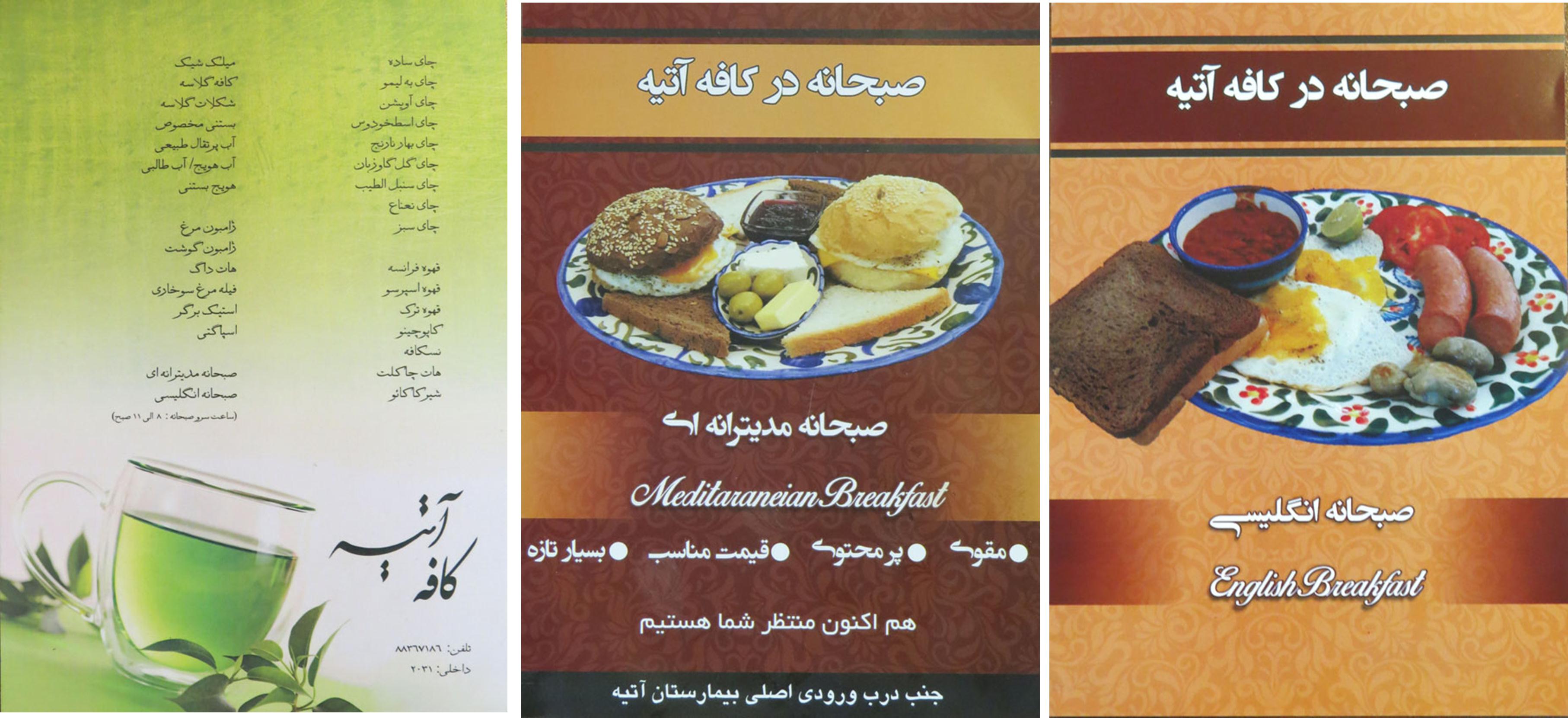Atieh Hospital coffee shop located to the left of the main entrance door of the hospital, next to the Ayandeh pharmacy
