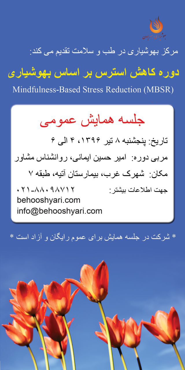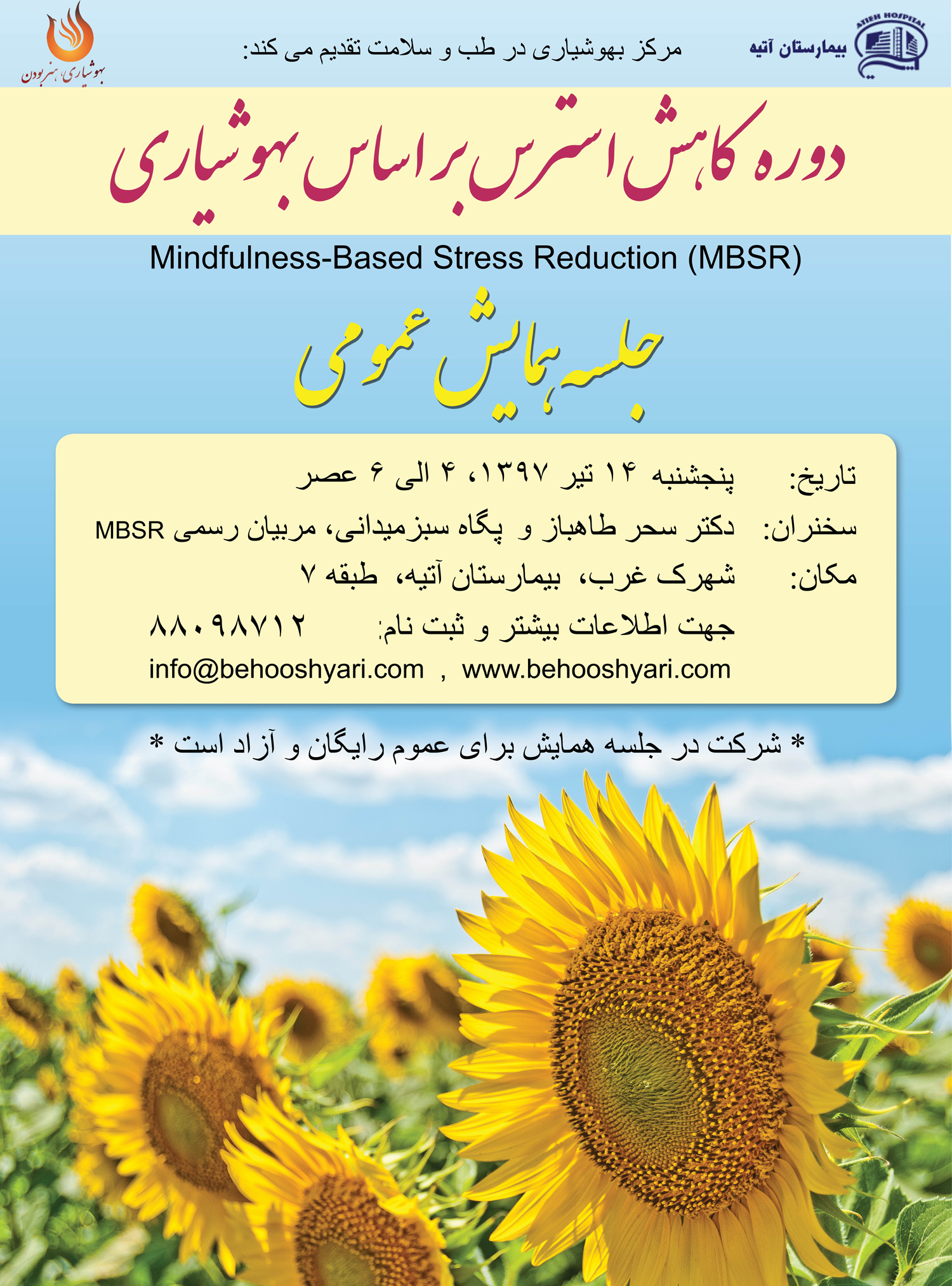 اگر میخواهید بیاموزید كه چگونه از خودتان بهتر مراقبت کنید و به حس آسودگی و آرامش خاطری عمیق دست یابید و اگر مشتاق هستید که به طور فعالانه در سلامتی و بهزیستی خود نقش داشته باشید، حضور شما را در دورۀ کاهش استرس بر اساس هشیاری بیمارستان آتیه خوشآمد میگوییم.
