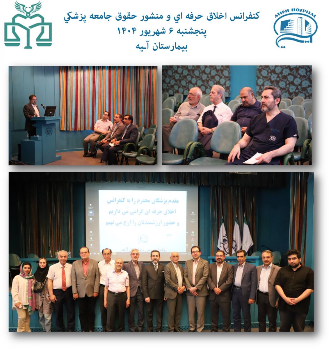 کنفرانس «اخلاق حرفهای و منشور حقوق جامعه پزشکی» با همکاری انجمن علمی اخلاق پزشکی ایران و بیمارستان آتیه، پنجشنبه 6 شهريور 1404 برگزار گردید. این رویداد علمی با هدف ارتقای دانش و بینش اخلاقی در حرفه پزشکی و تأکید بر رعایت حقوق بیماران و جامعه پزشکی شکل گرفت.