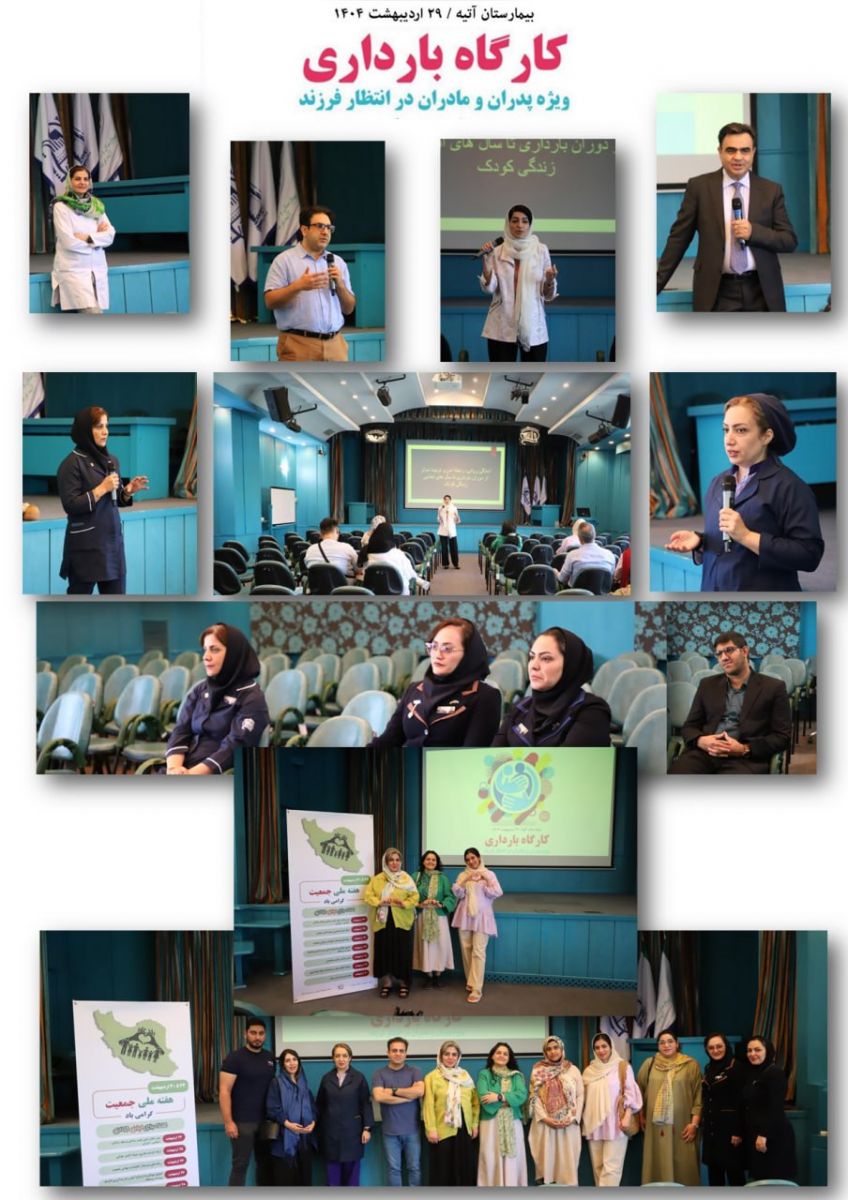 كارگاه بارداري ويژه پدران و مادران در انتظار فرزند روز دوشنبه 29 ارديبهشت ماه 1404 با حضور مادران باردار و همسران، با همكاري واحد آموزش و ارتقا سلامت و روابط عمومي در بيمارستان آتيه برگزار شد