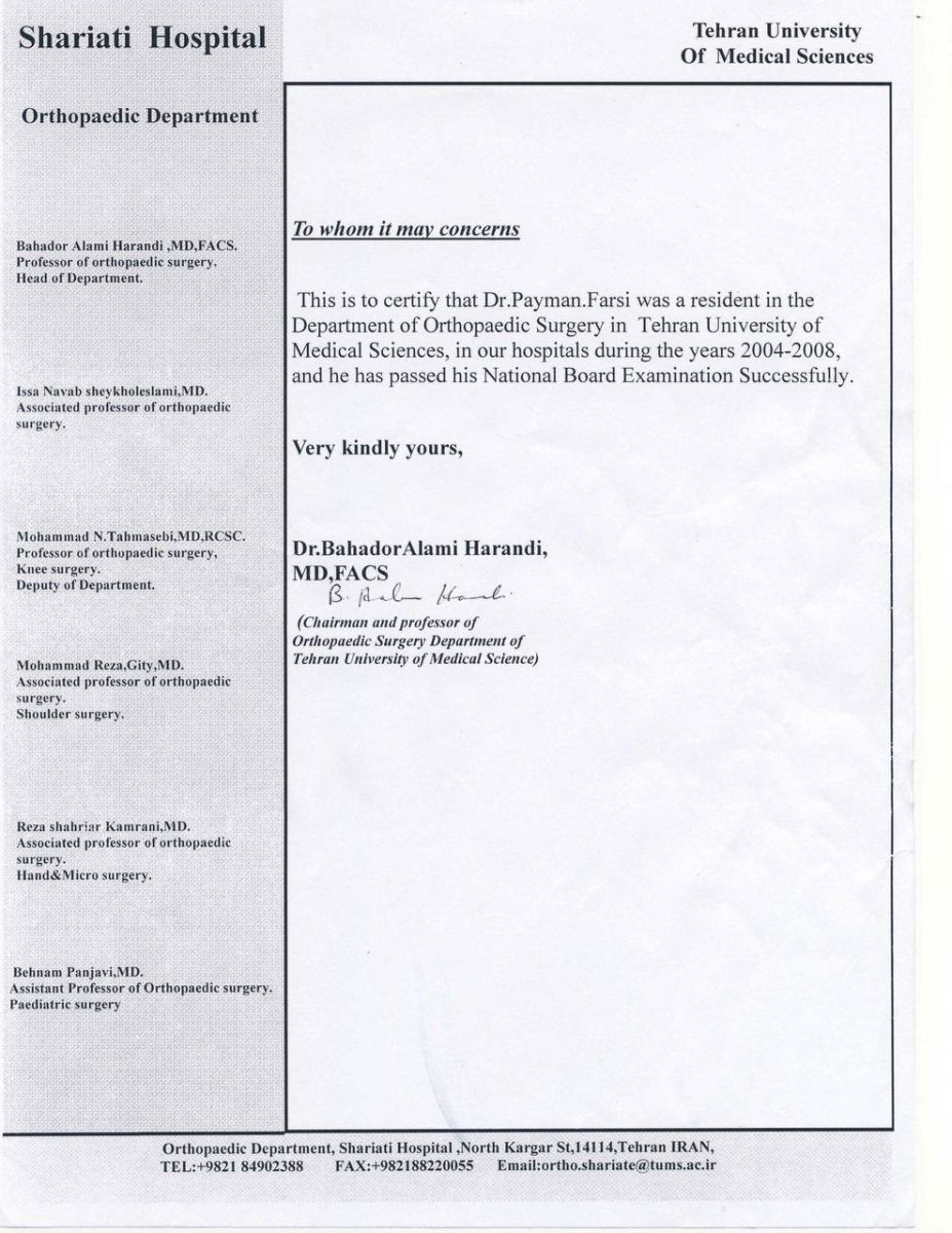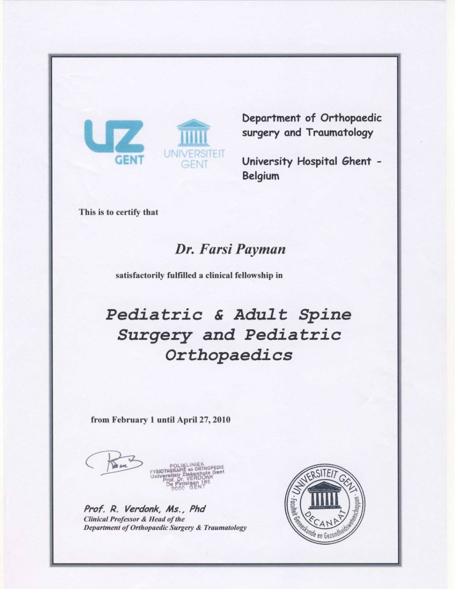 متخصص ارتوپدي/ جراحي ستون فقرات/ فلوشيپ كلينكال جراحي ستون فقرات از فرانسه، آمريكا و بلژيك
