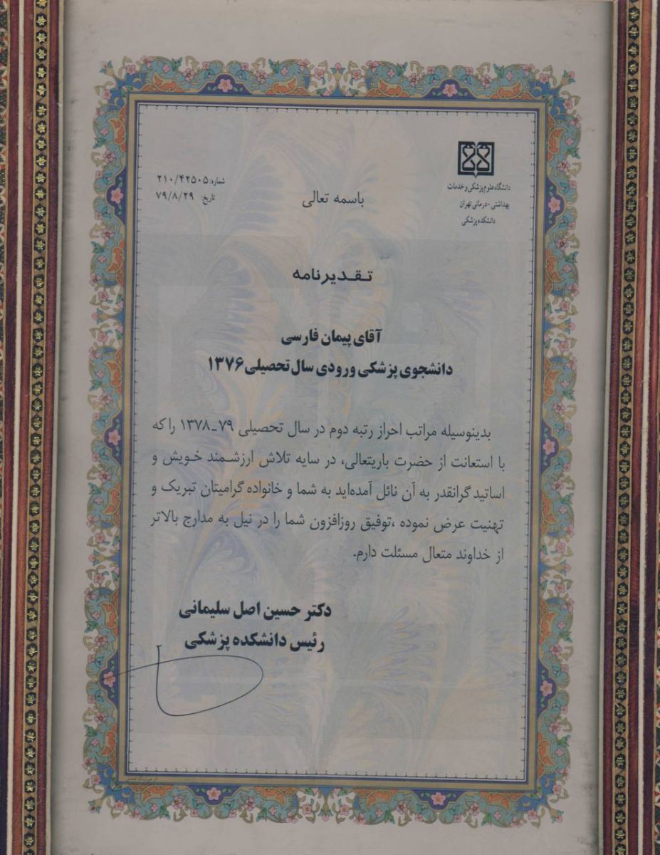 نوبت و مشاوره پزشکی از دکتر پیمان فارسی