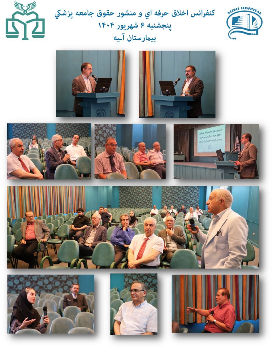 کنفرانس «اخلاق حرفهای و منشور حقوق جامعه پزشکی» با همکاری انجمن علمی اخلاق پزشکی ایران و بیمارستان آتیه، پنجشنبه 6 شهريور 1404 برگزار گردید. این رویداد علمی با هدف ارتقای دانش و بینش اخلاقی در حرفه پزشکی و تأکید بر رعایت حقوق بیماران و جامعه پزشکی شکل گرفت.