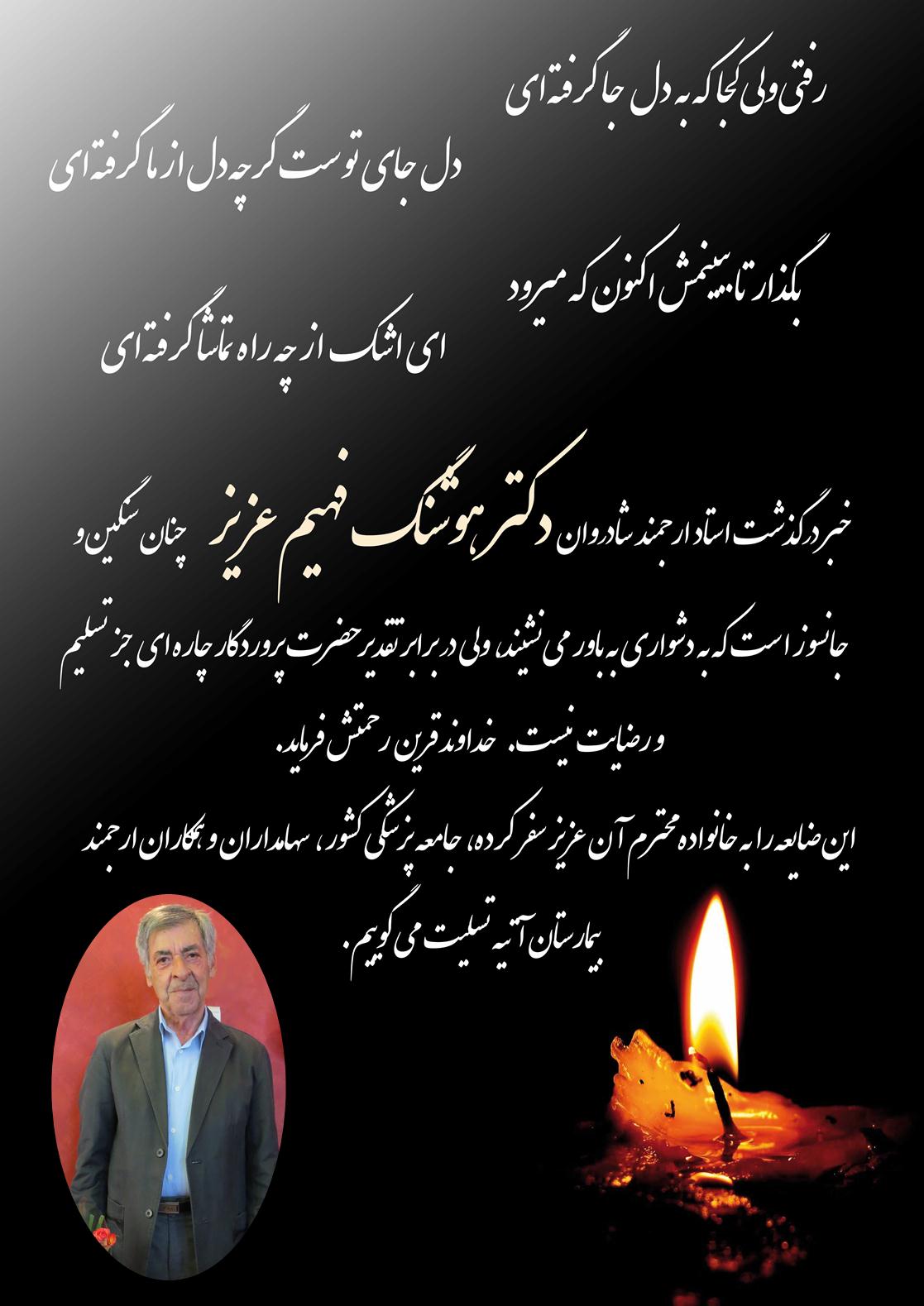 درگذشت استاد ارجمند شادروان دكتر هوشنگ فهيم