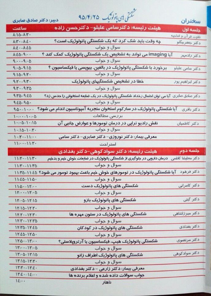 همايش فصلي ارتوپدي با عنوان شكستگي هاي پاتولوژيك روز جمعه 25 تيرماه 95 در تالار دكتر هنرمند بيمارستان آتيه برگزار شد.