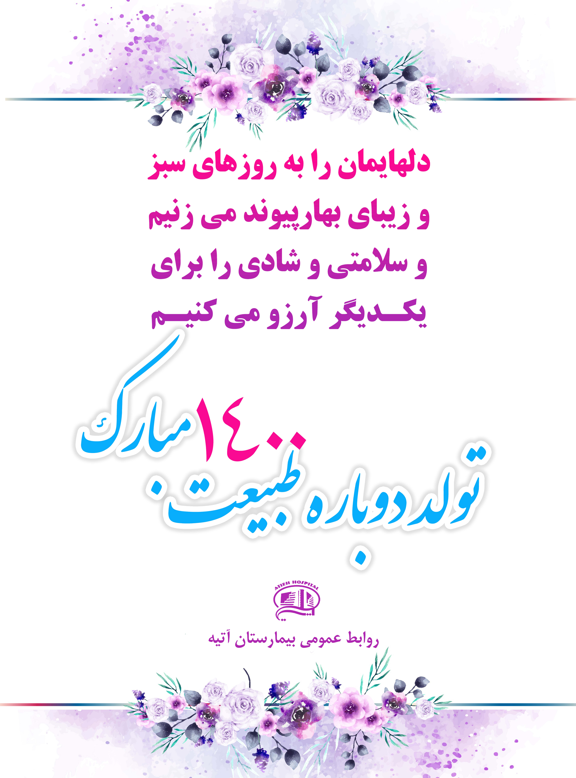دلهايمان را به روزهاي سبز و زيباي بهار پيوند مي زنيم و براي يكايك فرزندان خانواده بزرگ آتيه از خداي مهرباني ها، سالي سرشار از شكوفايي، سربلندي و سلامتي آرزو مي كنيم.