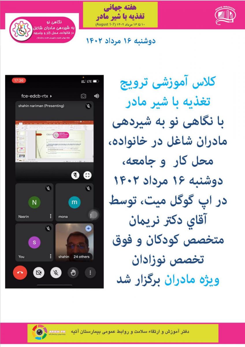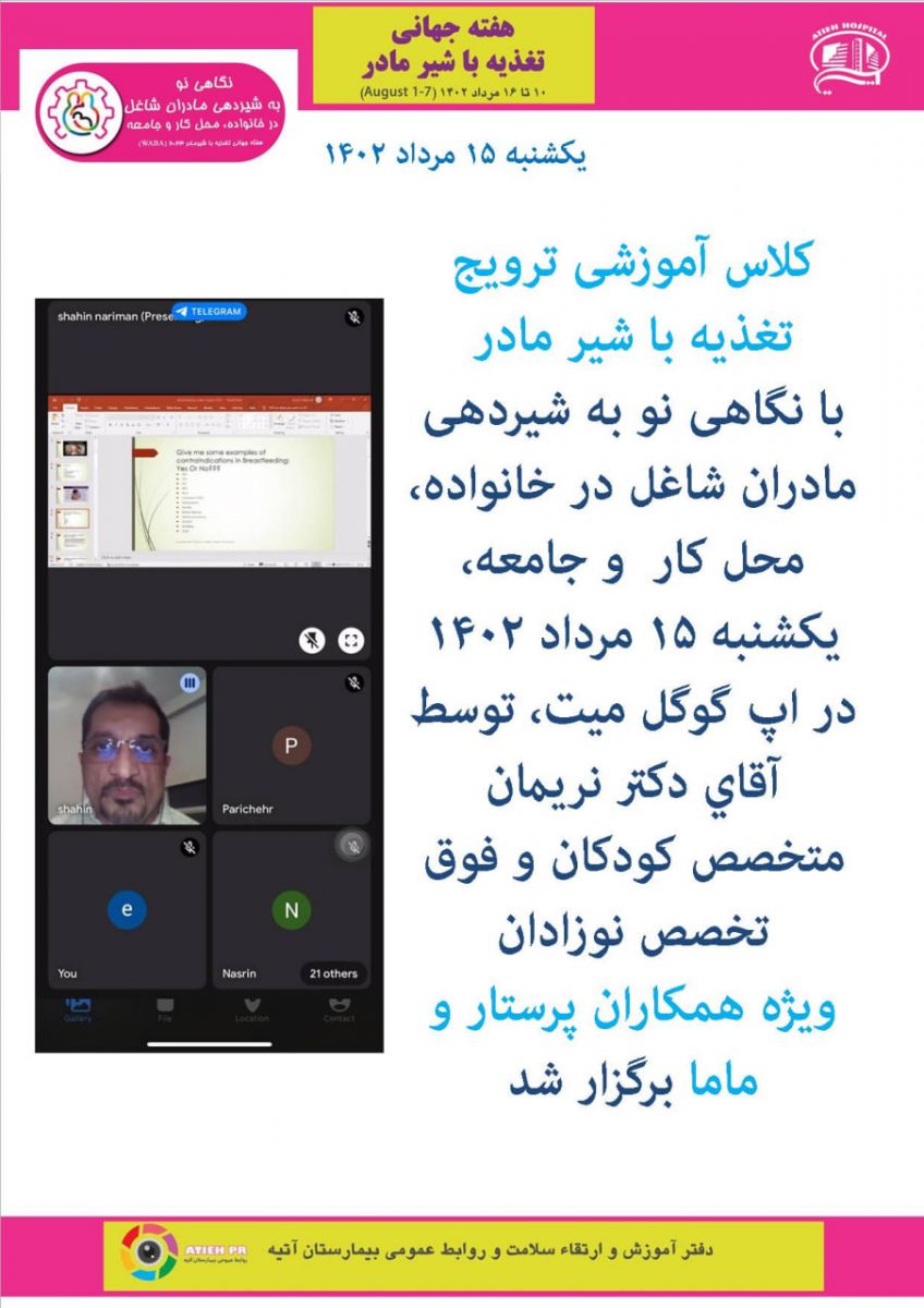 پيام هاي آموزشي- هفته جهاني تغذيه با شير مادر- بيمارستان آتيه - مرداد 1402