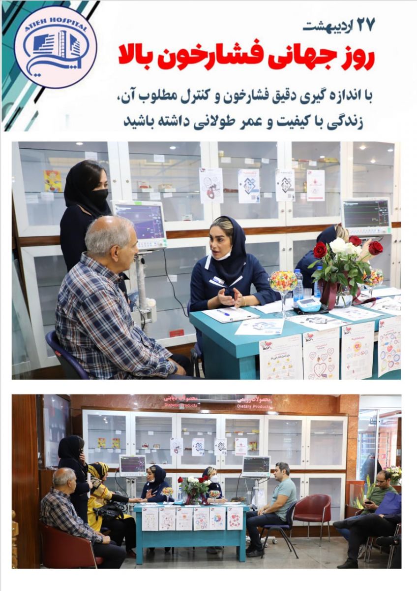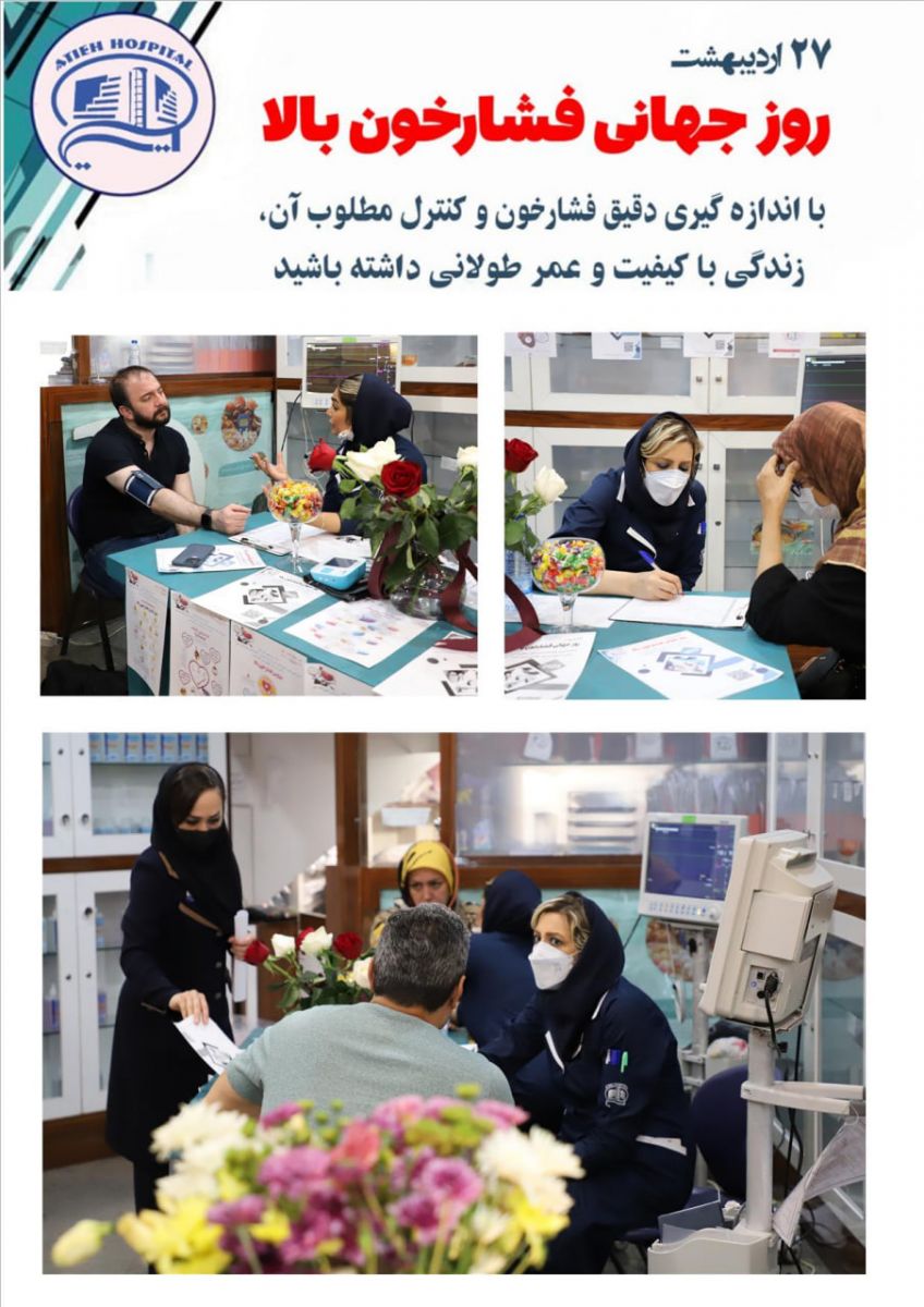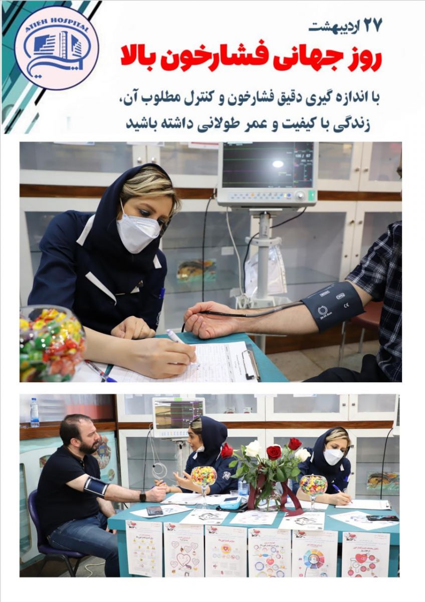 به مناسبت اين روز كه به نام روز جهاني فشار خون بالا نامگذاري شده است در لابي بيمارستان آتيه، نسبت به سنجش فشار خون مراجعين حاضر در بيمارستان اقدام شد و آن ها از ميزان فشار خون خود آگاه شدند