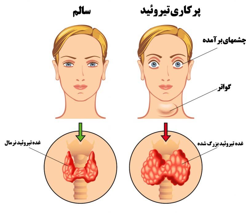 - پرکاری تیروئید (افزایش غیرطبیعی فعالیت تیروئید)
