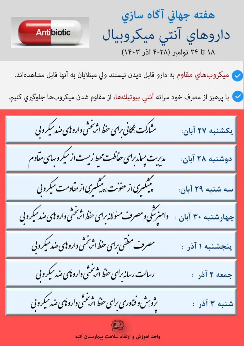 هفته چهاني آگاه سازي داروهاي آنتي ميكروبيال 18 آبان تا 4 آذر 1403- بيمارستان آتيه