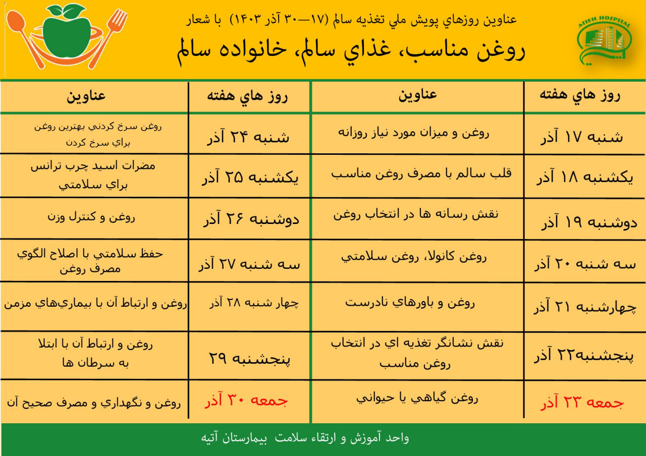 پويش ملي تغذيه سالم (17-30 آذر 1403)