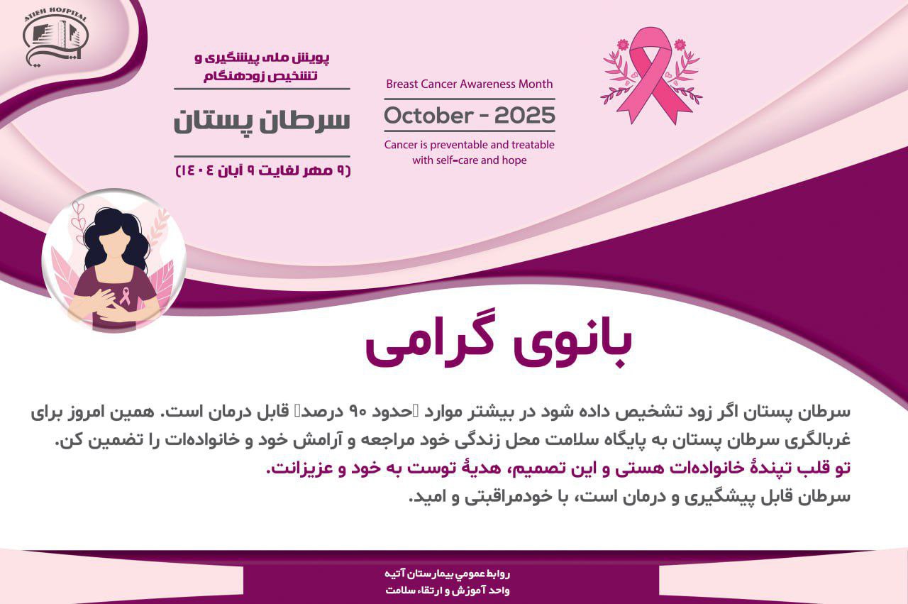 پویش ملی پیشگیری و تشخیص زود هنگام سرطان پستان 9 مهر لغايت 9 آبان