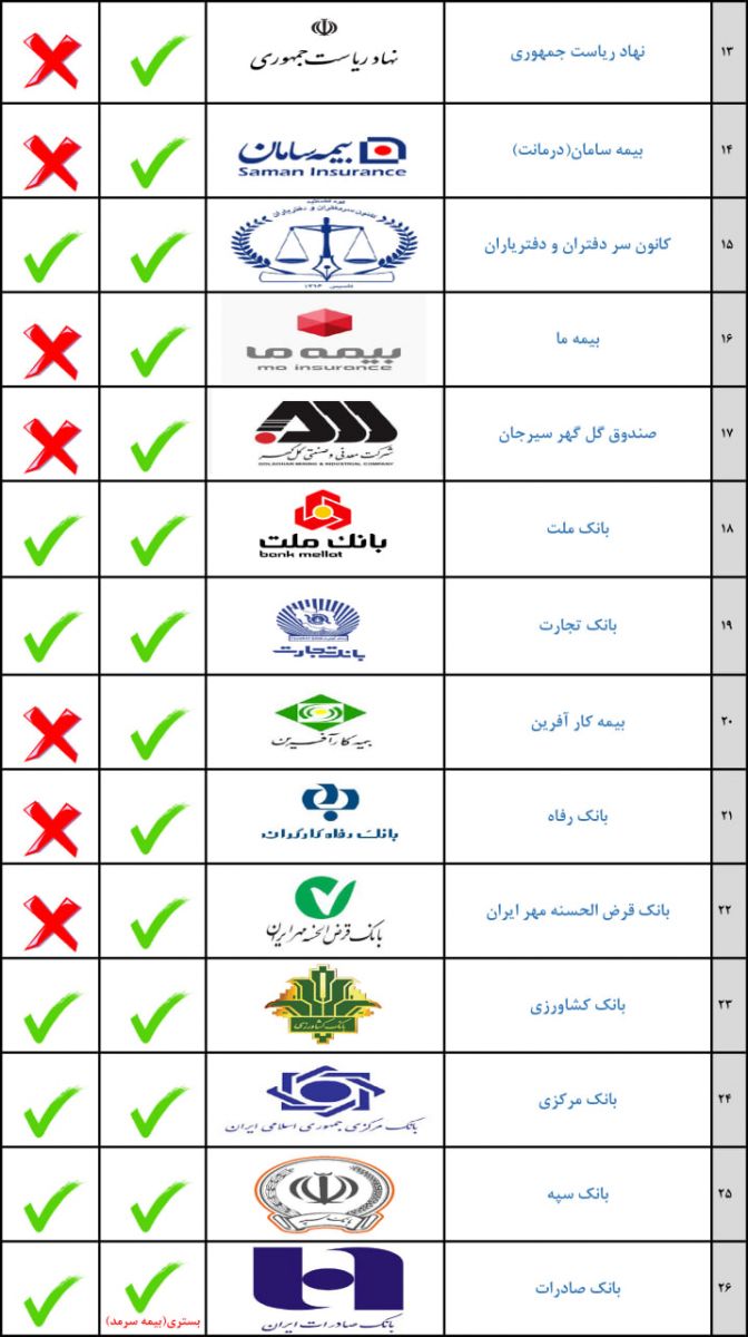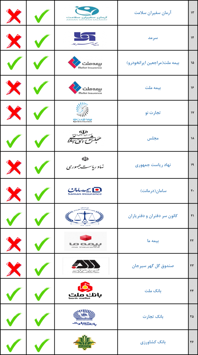 - پذيرش بيمه هاي فوق منوط به پذيرفتن پزشك مي باشد