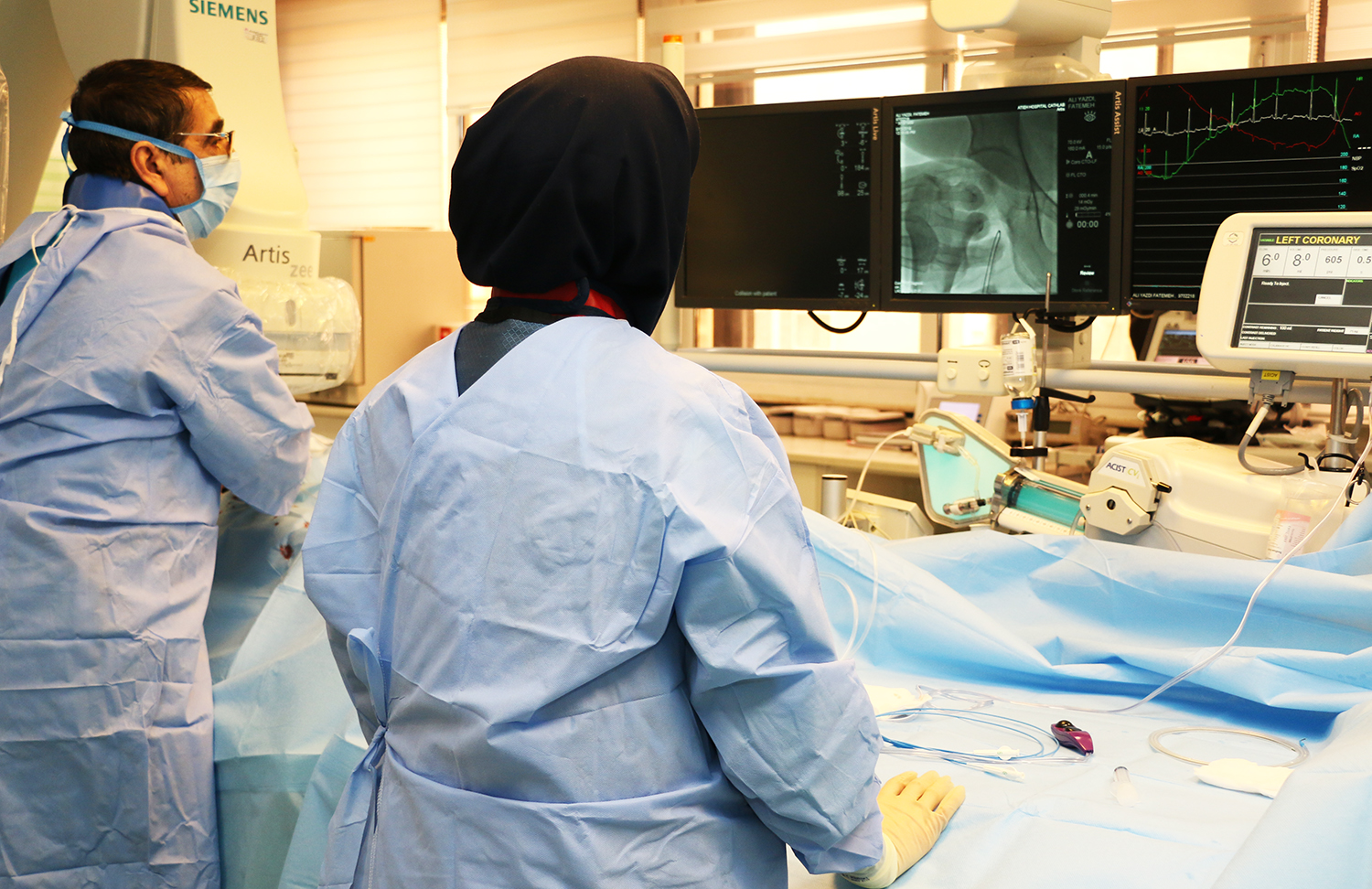 آنژیوگرافی عروق قلب، عروق مغز، کاروتید و اندام ها، آنژیوپلاستی عروق قلب، کاروتید و اندامها، آنژیوگرافی و آنژیوپلاستی اطفال، گذاشتن پیس میکر موقت و پیس میکر دائم، ترميم دریچه های قلب، گذاشتن فیلتر داخل وريدي، گذاشتن پورت دائم جهت بیماران شیمی درمانی و ... در بخش آنژيوگرافي انجام مي شود.