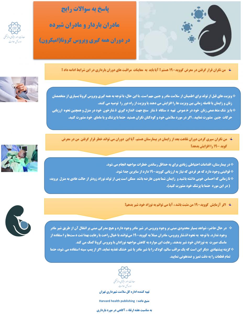 - پاسخ به سوالات رايج مادران باردار و شيرده در دوران همه گيري ويروس كرونا (اميكرون)