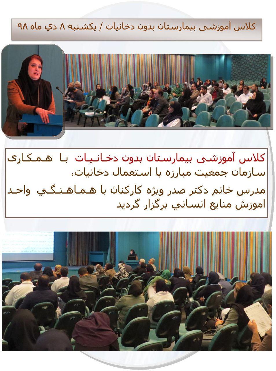 كلاس آموزشي بيمارستان بدون دخانيات 8 دي 98
